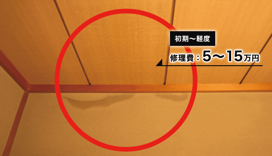 たとえば、天井のシミが薄く小さい段階なら、